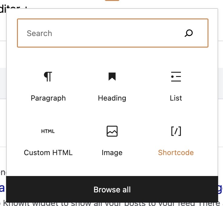 - Search for “shortcode” in the search bar
